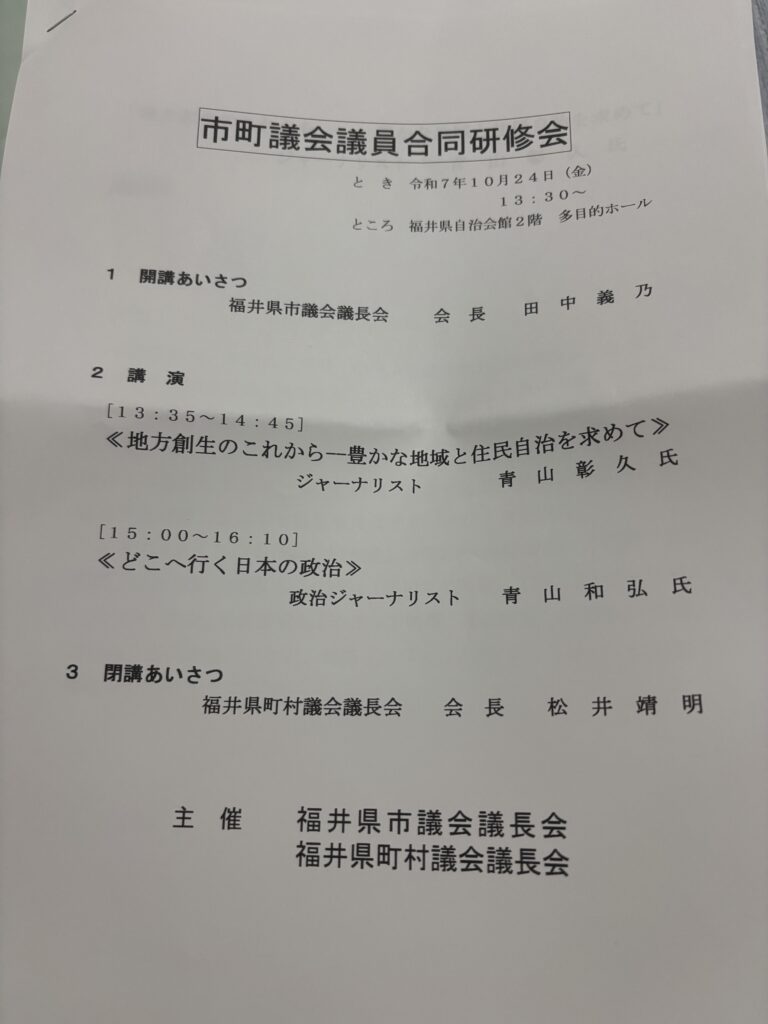 ブログ2025年10月24日【市町議会議員合同研修会〜これからの日本と政治〜】