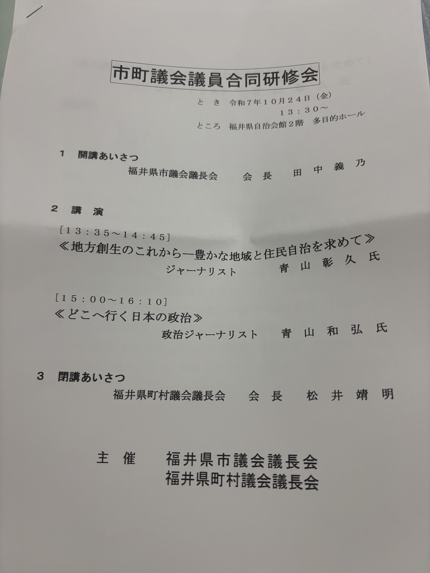 ブログ2025年10月24日【市町議会議員合同研修会〜これからの日本と政治〜】