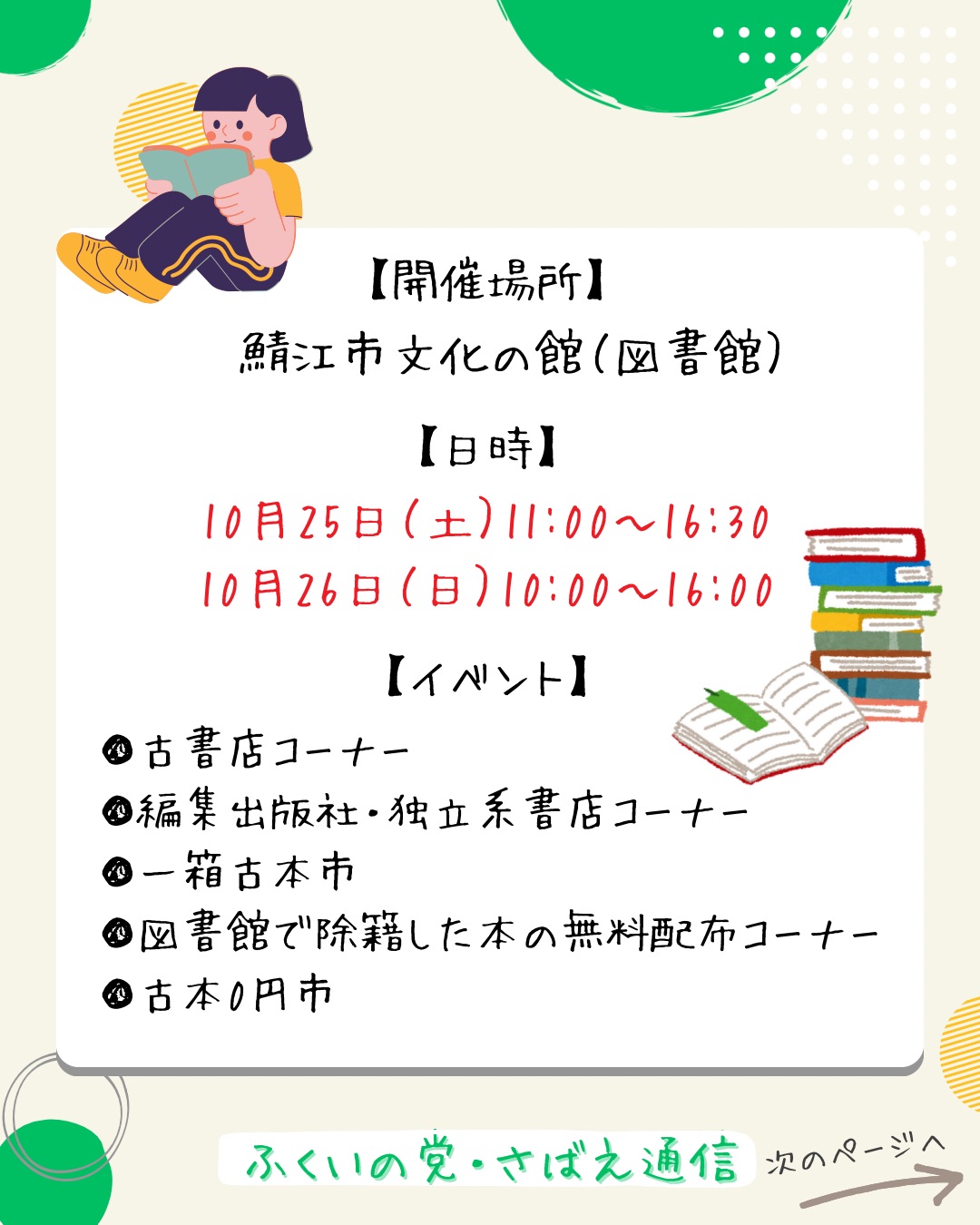 ブログ2025年10月21日「SABAE BOOK FES 2025(古書こしょフェス)」 開催