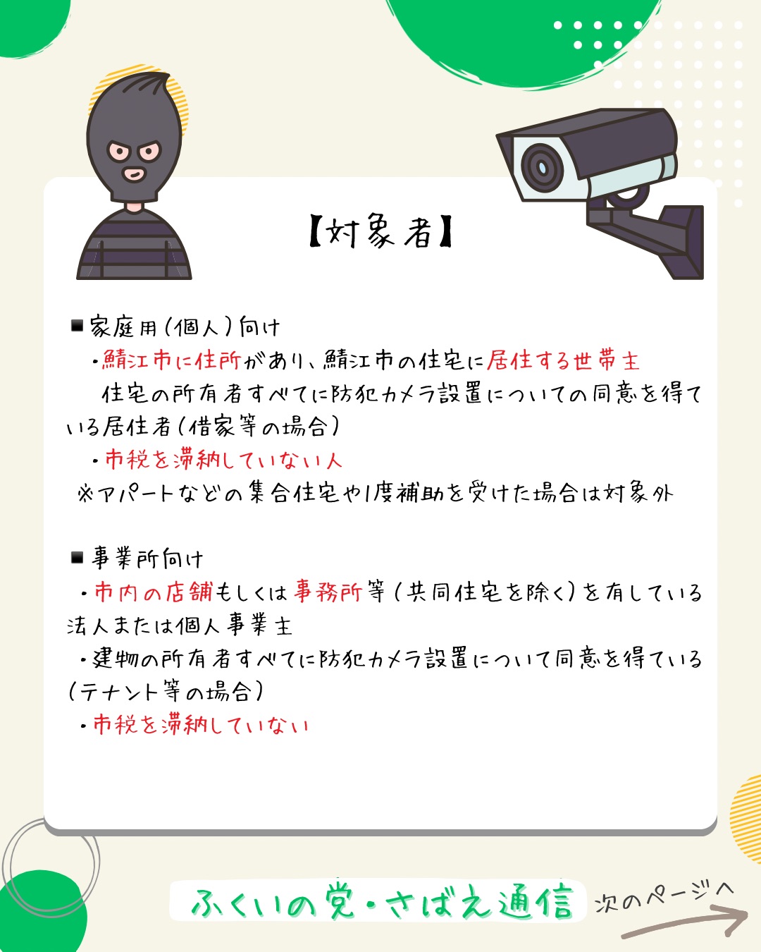 \鯖江市の防犯カメラ補助、知ってますか?📸✨/