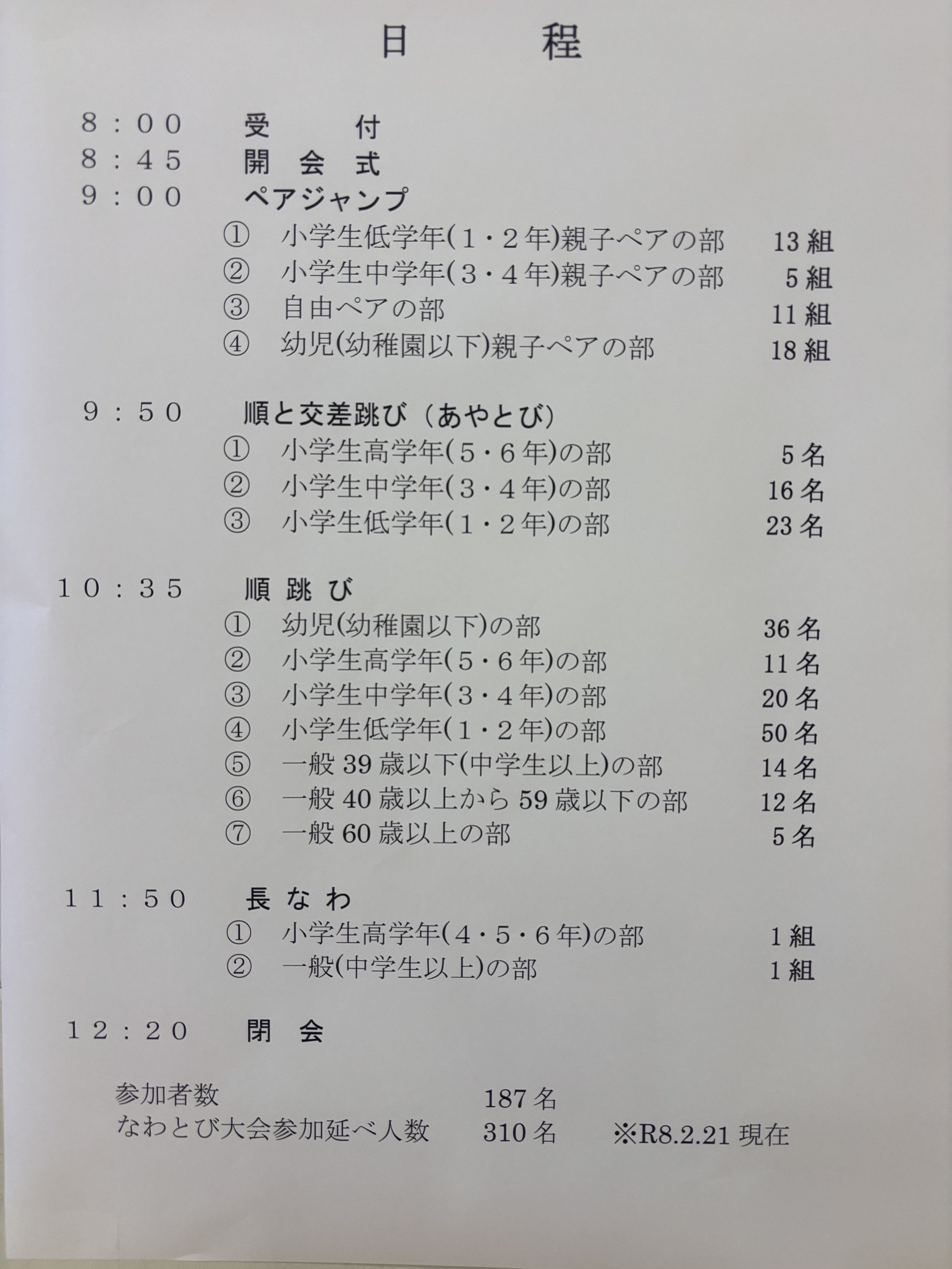 こうした「市民なわとび大会」はありませんでした。