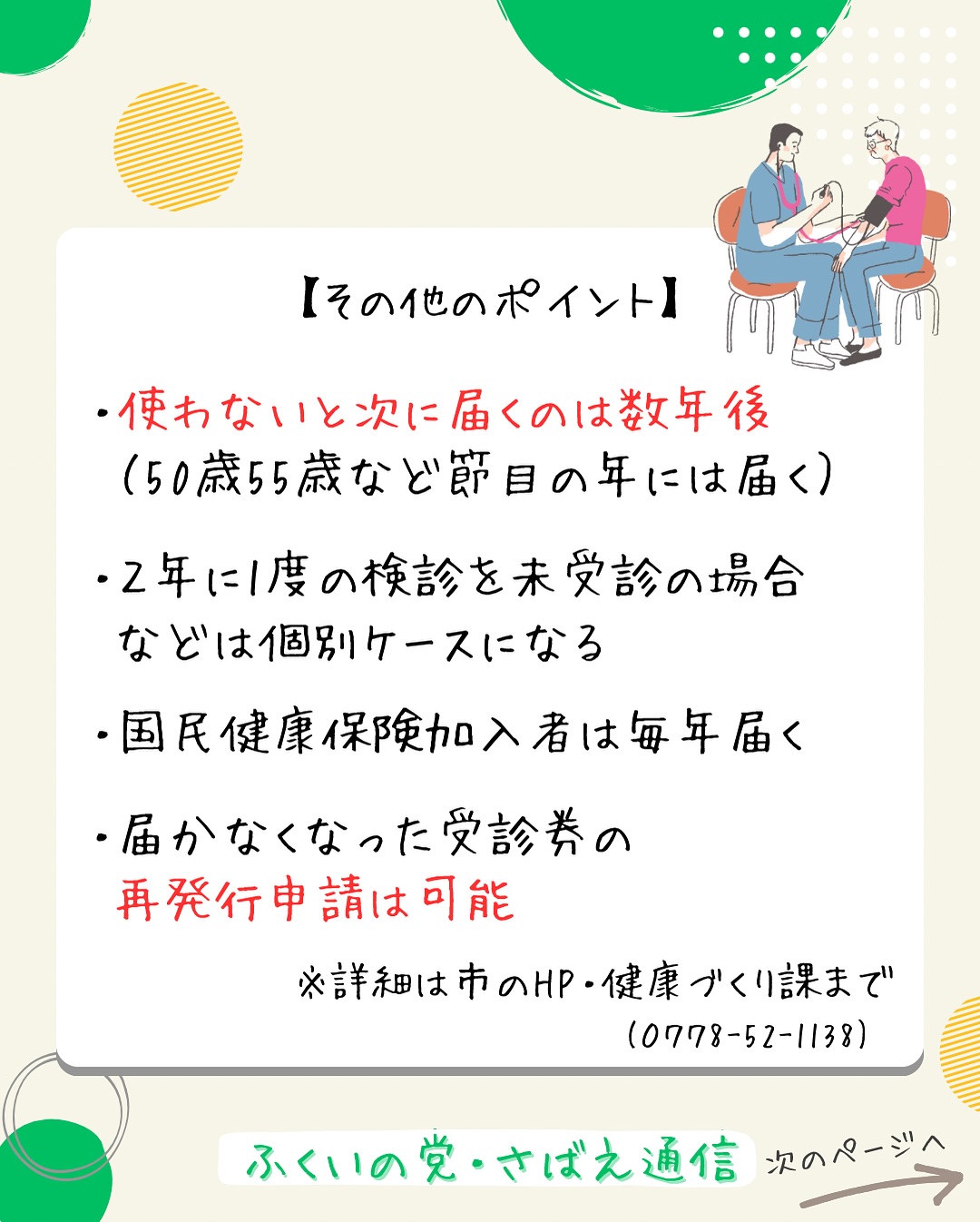鯖江市から届く《健康診査・がん検診の受診券》を 使わなかった場合、なんと‼️ 翌年度から届かなくなる可能性があるんです…!